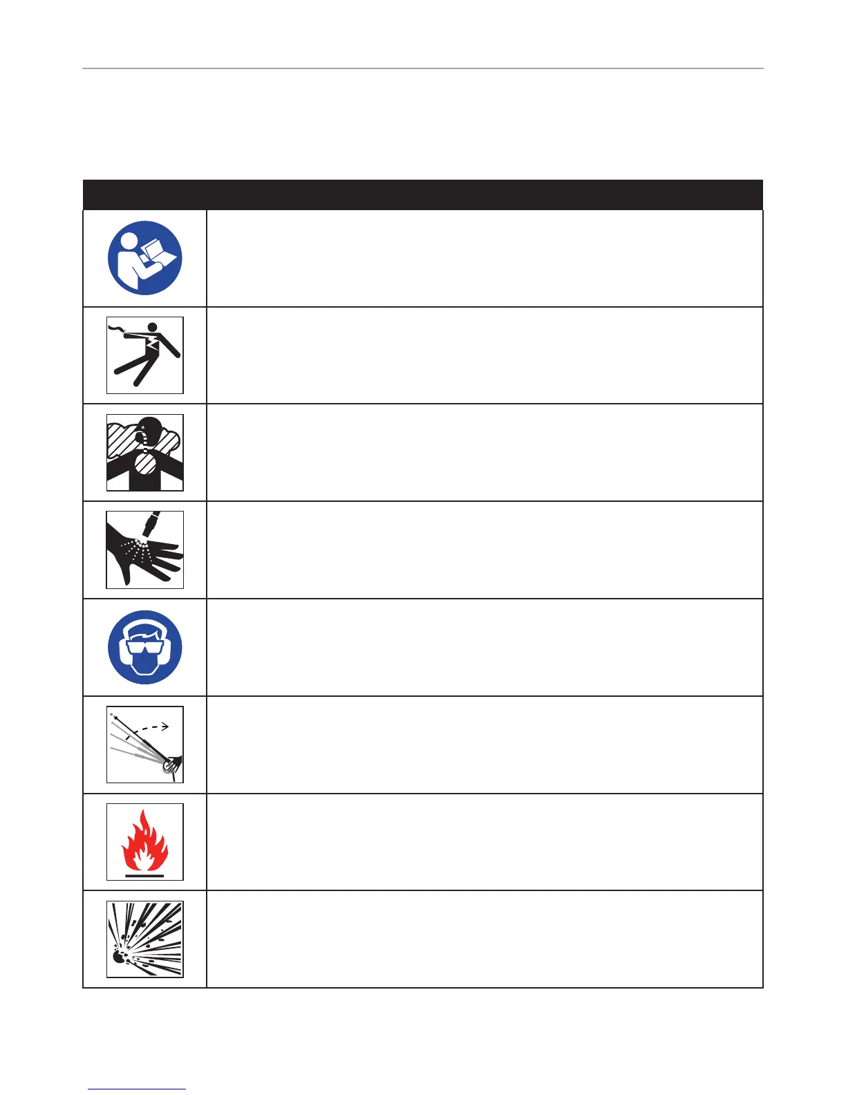 Risk of Explosion. Do not spray flammable liquids. Flammable liquids, fuel, and their vapors are explosive