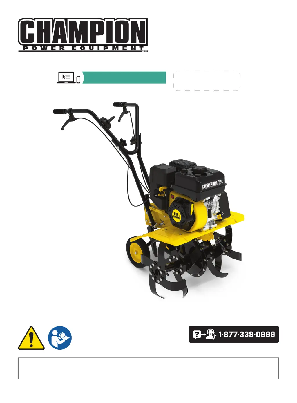 If your Champion Power Equipment Tiller engine is running poorly, consider these potential causes: * A defective or incorrectly gapped spark plug. Inspect the spark plug. * Dirty air filter(s). Clean or replace them. * Stale gasoline. Replace it with fresh gasoline. * Engine cooling system clogged. Clean the air cooling system. For issues related to carburetor adjustments or dirt/water in the fuel tank, it is recommended to contact the Technical Support Team.