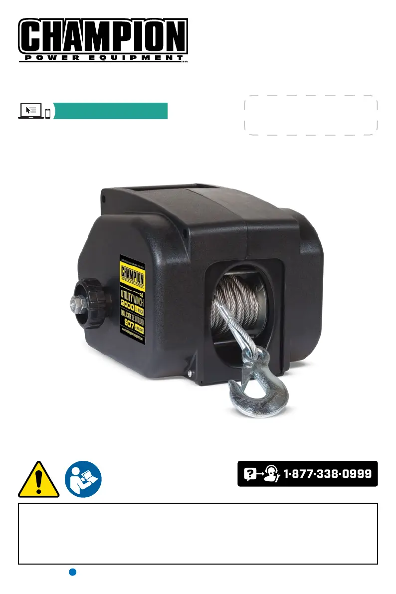 If the motor of your Champion Power Equipment Winch is running slowly or without normal power, it might be due to insufficient current or voltage. Check to ensure that the voltage supply is at the required 12V.