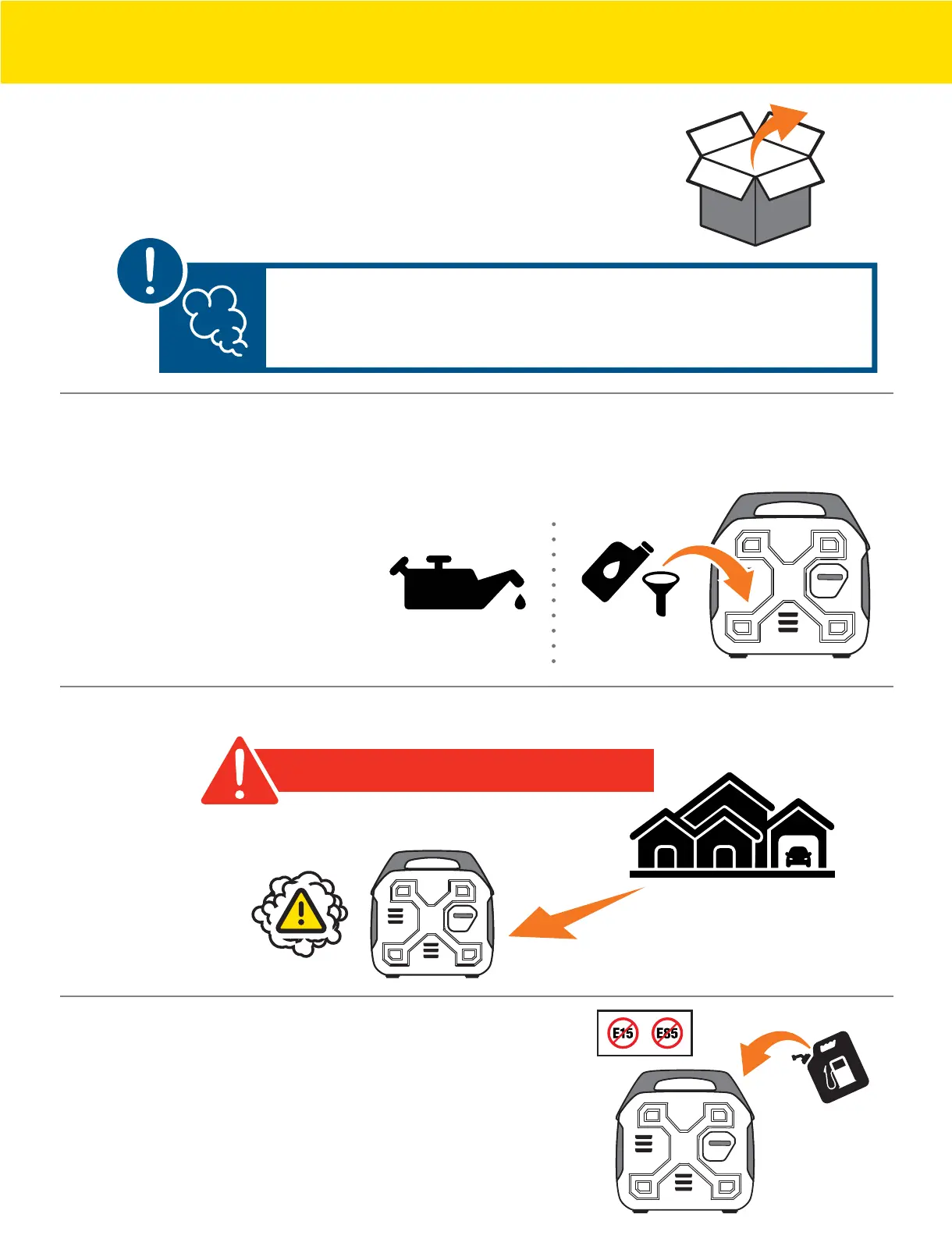 Move the generator outdoors. / Mueva el generador afuera.