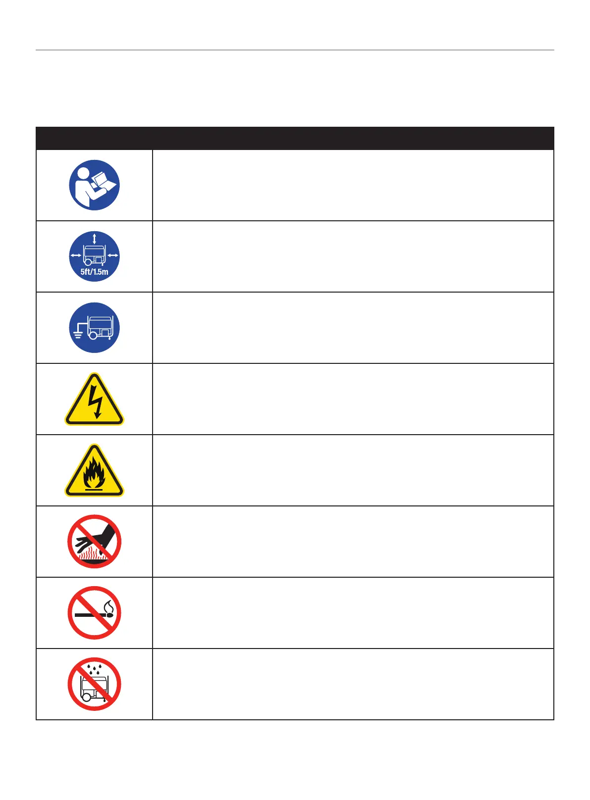 severe burns or death. Keep generator at least 5 feet (1.5m) from all objects to prevent combustion.