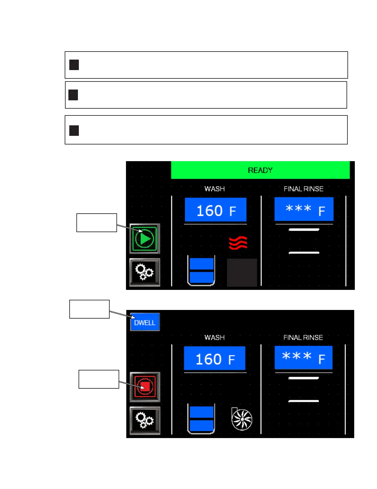 start button appears, Fig.17. Wait until the wash temperature reaches 160ºF/71ºC.