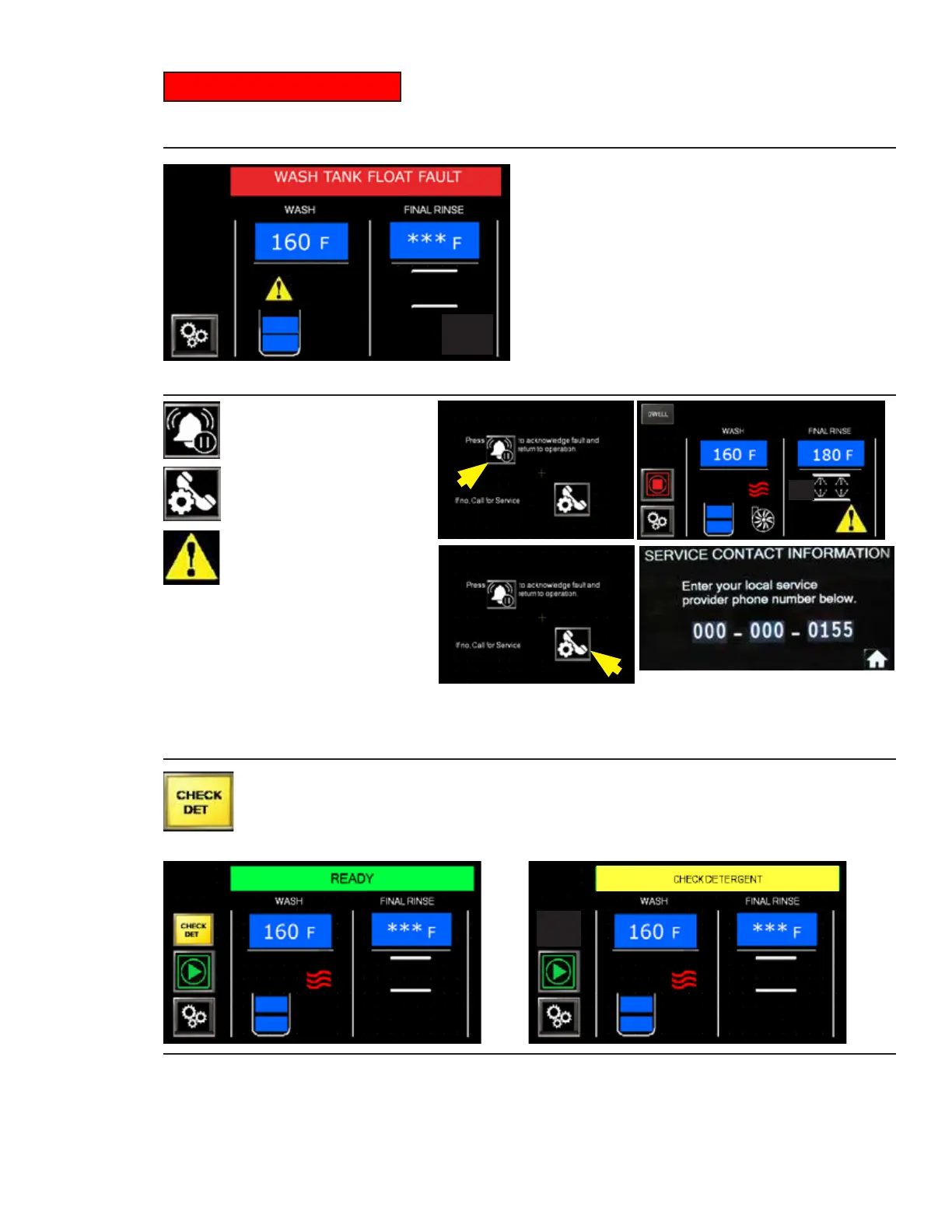 WASH TANK FLOAT FAULT TOUCH TO RESET