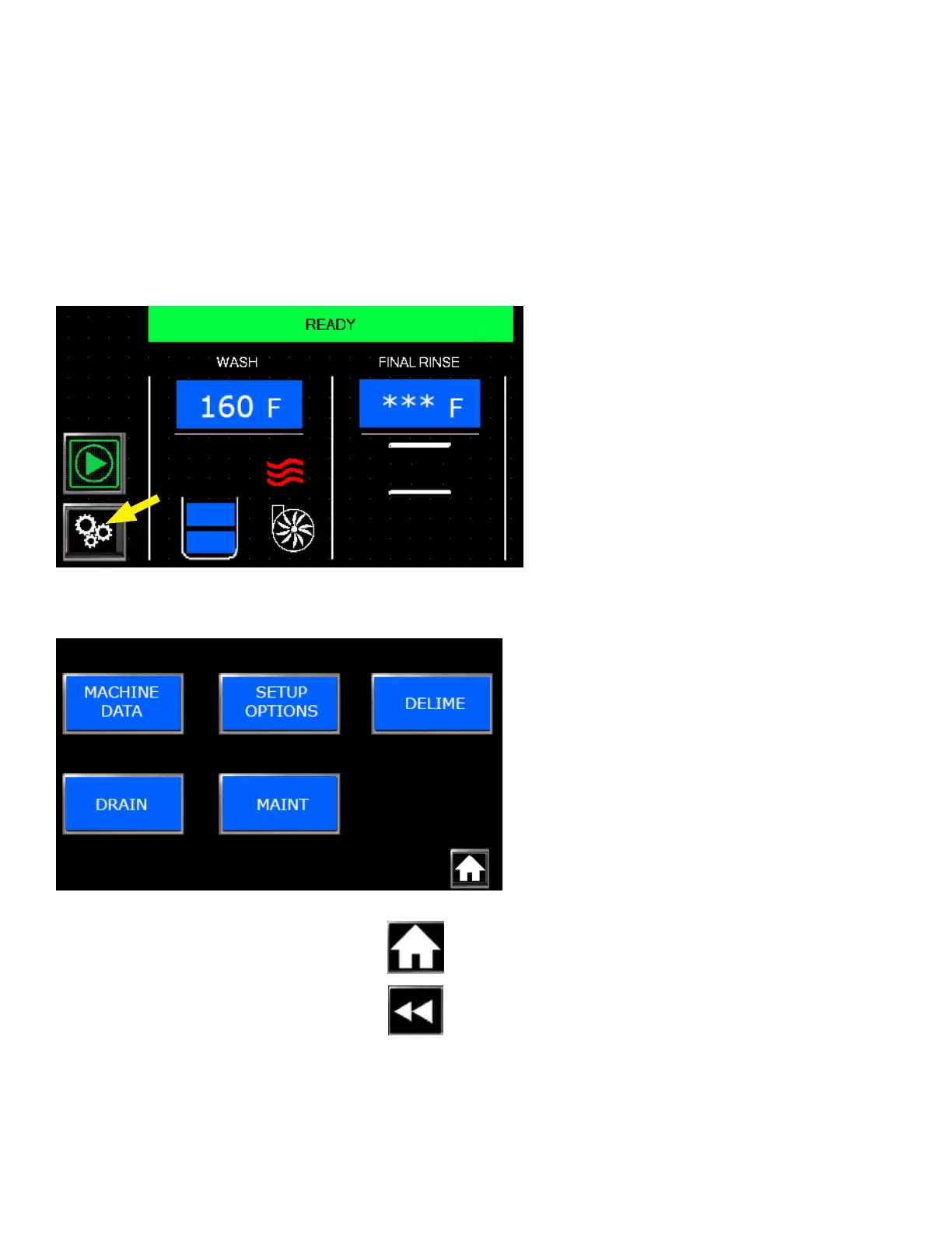 • The GEARS button appears on the main screen and accesses the supervisor mode, Fig. 29.