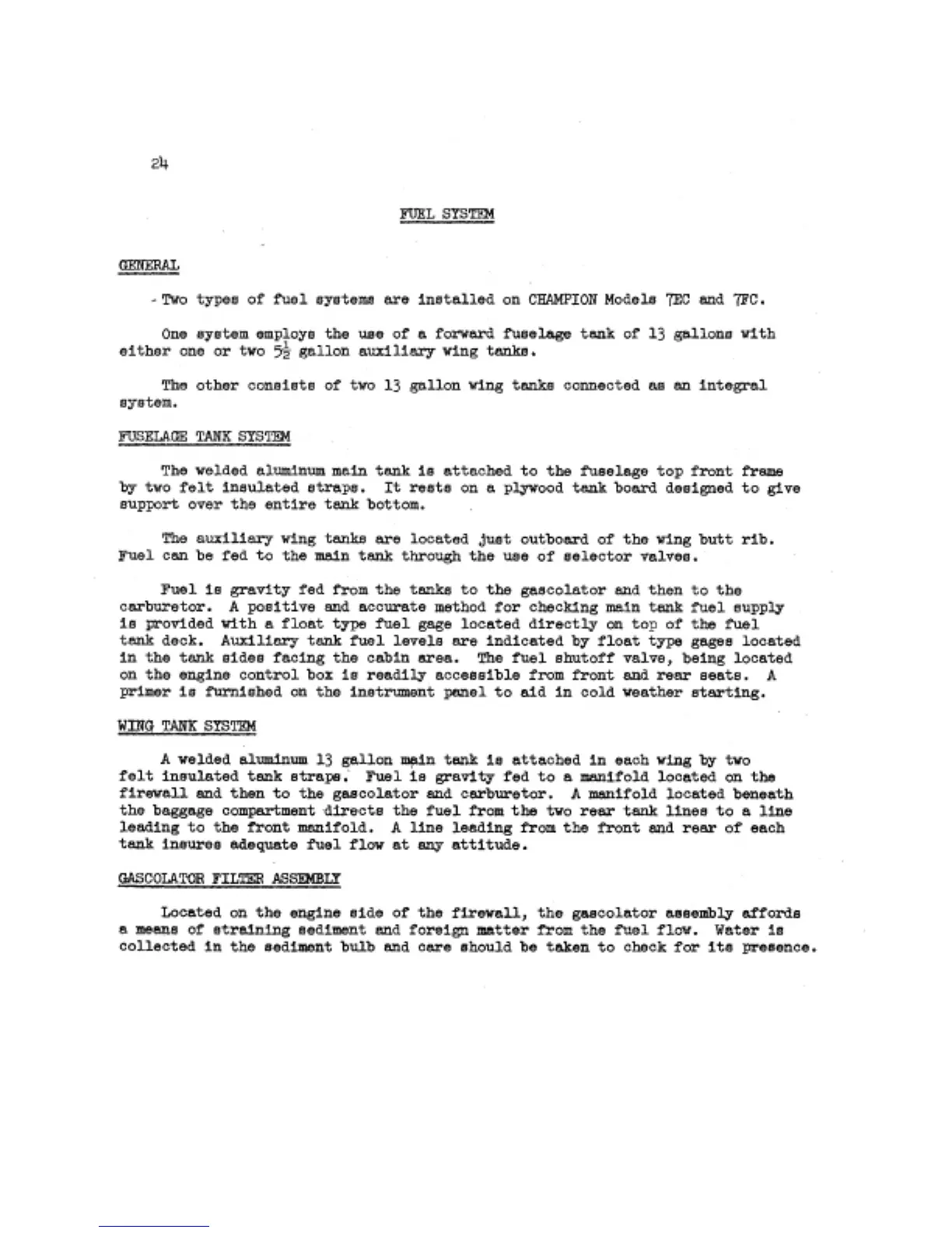 Champion 7EC - Fuel System Configuration; Fuel System Overview; Fuselage Tank System; Wing Tank System