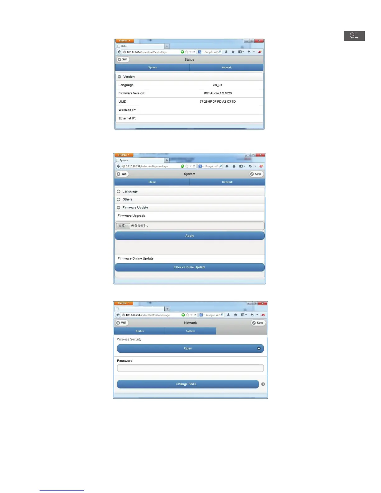 4. Setting-iken: Det nns 3 underikar: Status, System and Network (Nätverk).