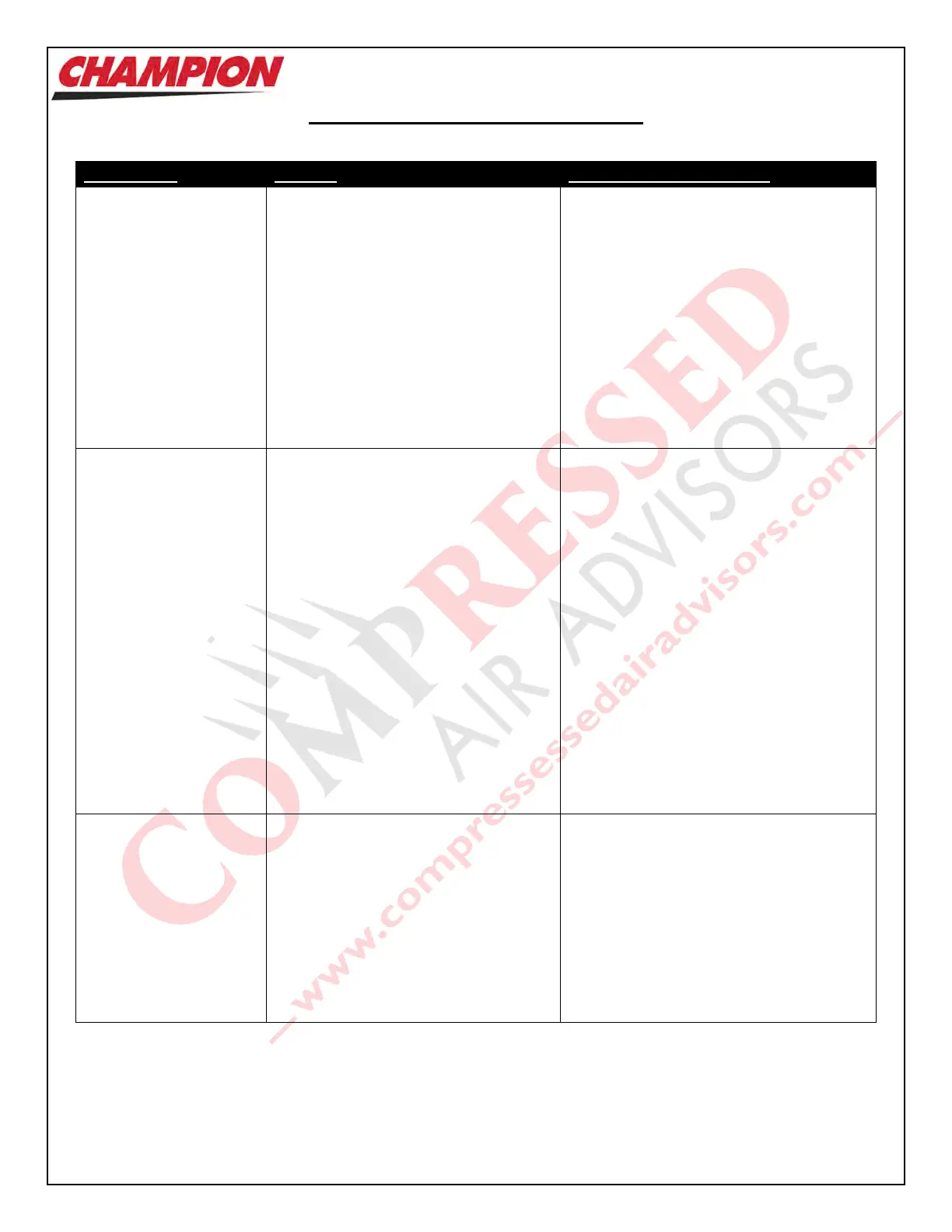 Condition: Cause: Suggested Correction: