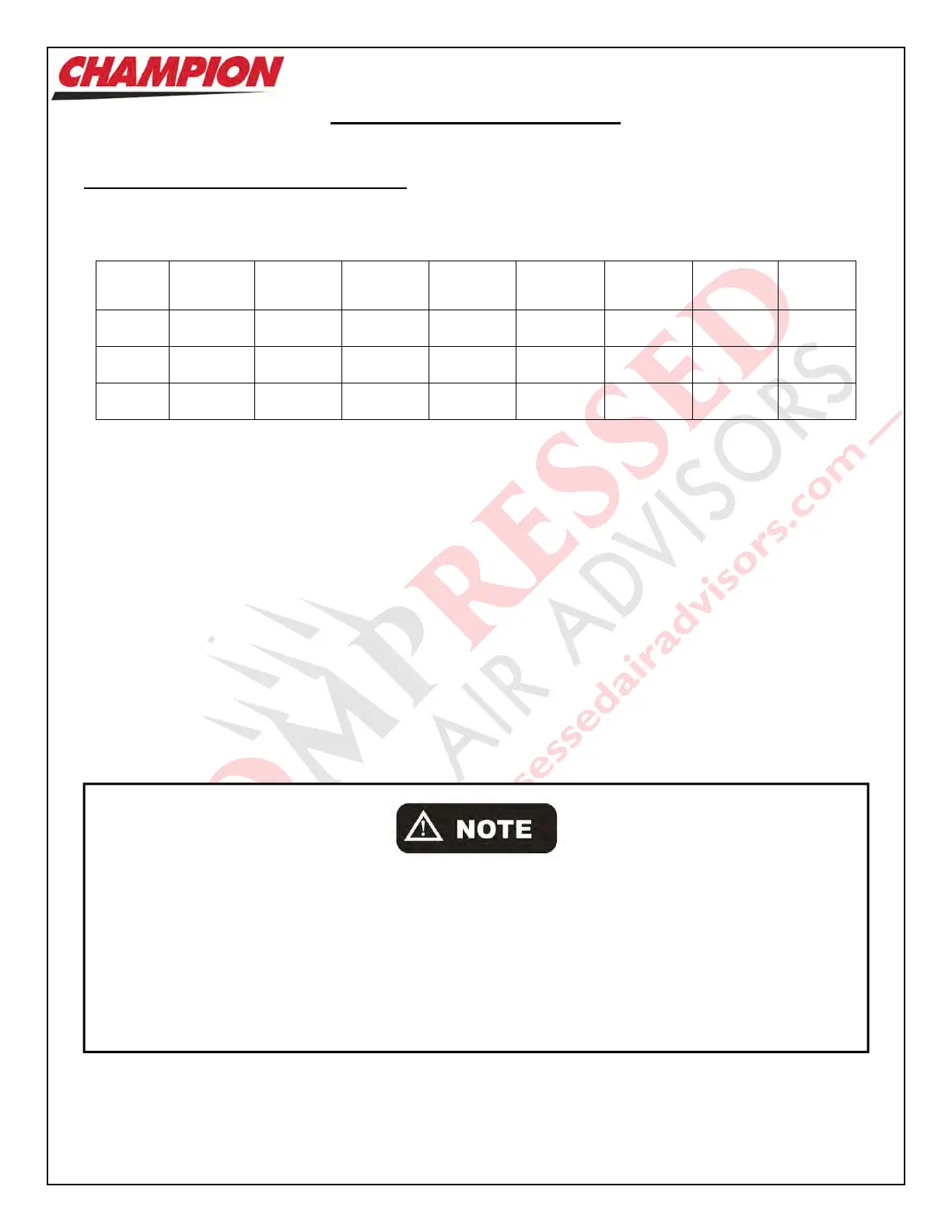Please consult with your Champion Distributor or contact Champion directly should you have any questions or