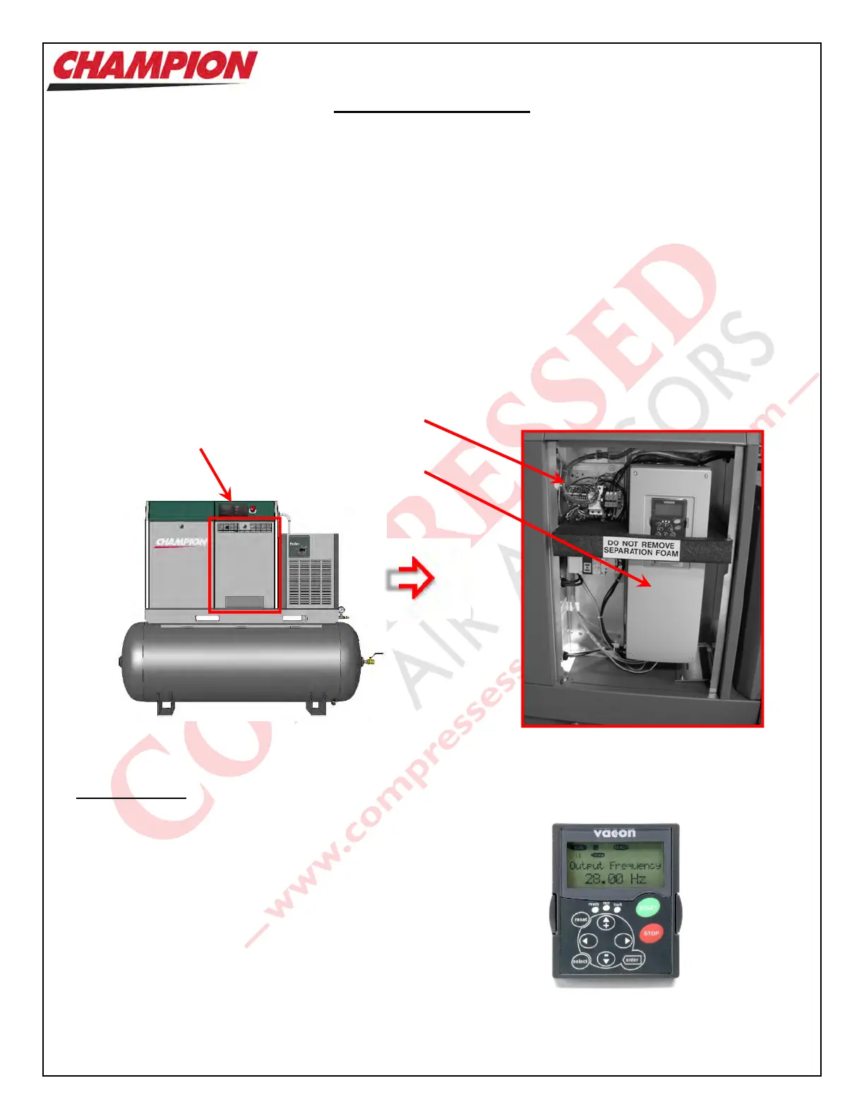 Your Champion DRS 15 Rotary Screw Compressor Unit has been equipped with a Vacon ‘Variable Speed Drive’,