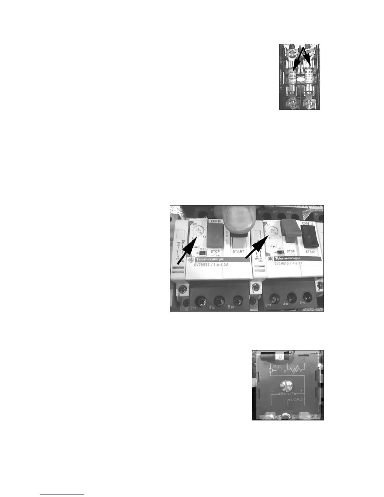 Motor overloads are located to the left of the fuse block inside the control cabinet. Each