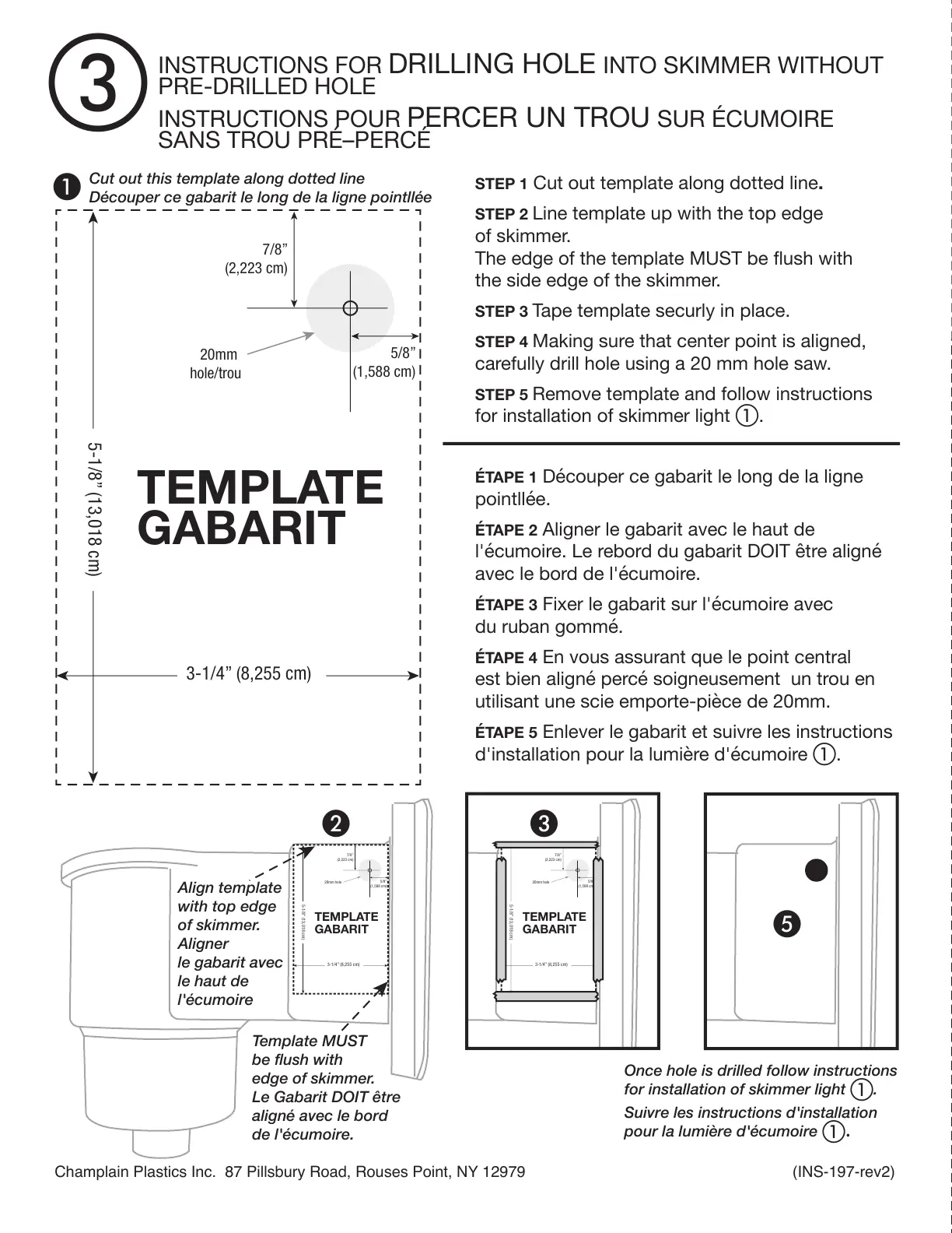 INSTRUCTIONS FOR DRILLING HOLE INTO SKIMMER WITHOUT
