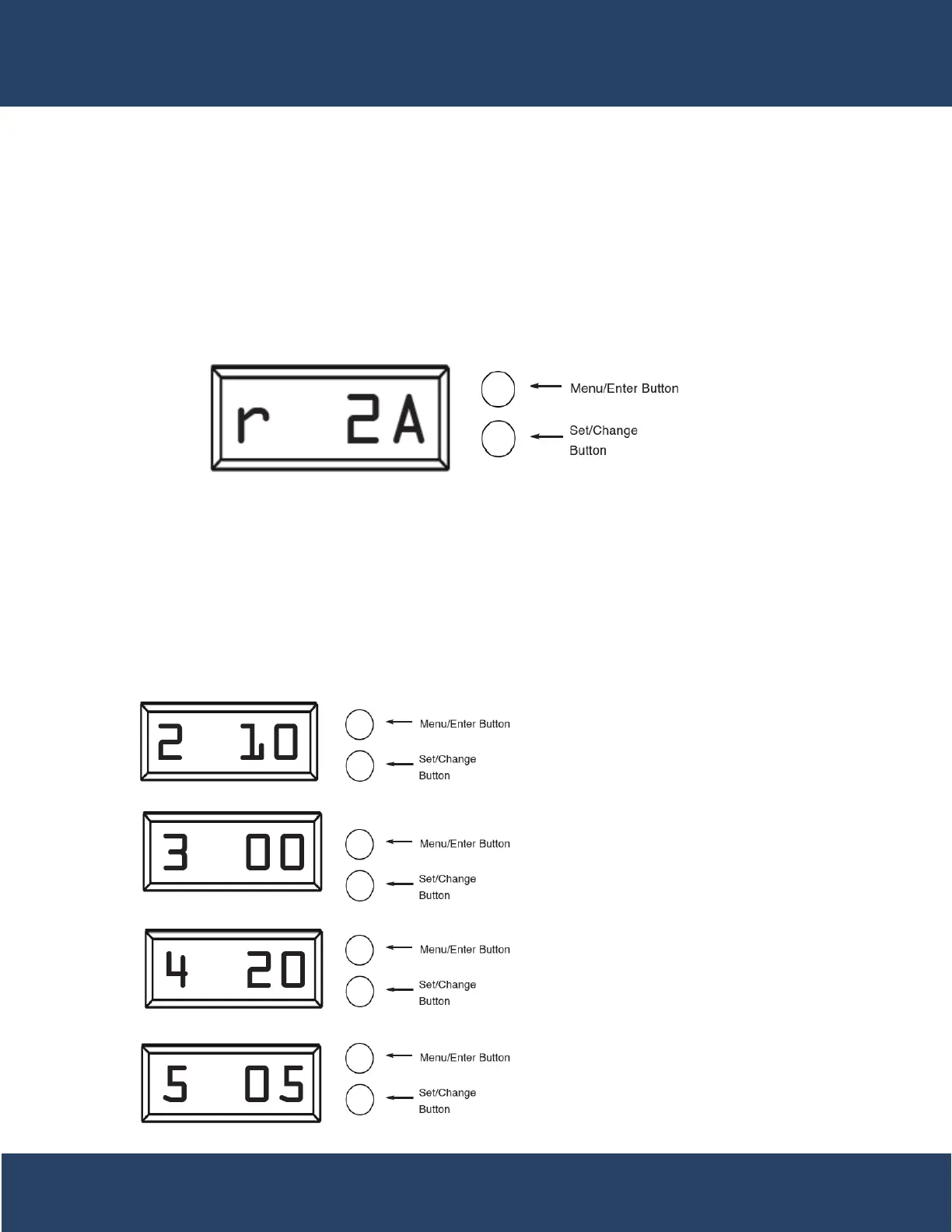 Press the Menu/Enter Button. The next 4 displays viewed are part of a series of option settings used to