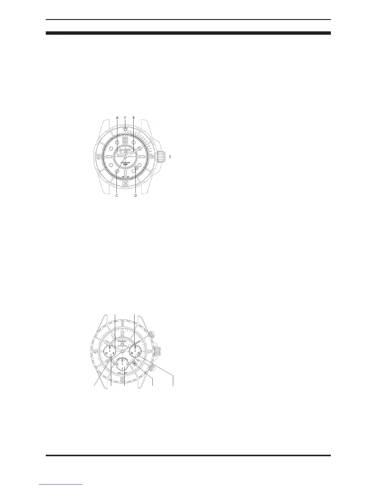 b) To reset the Chronograph, press the button G. The central arrow shaped second hand H