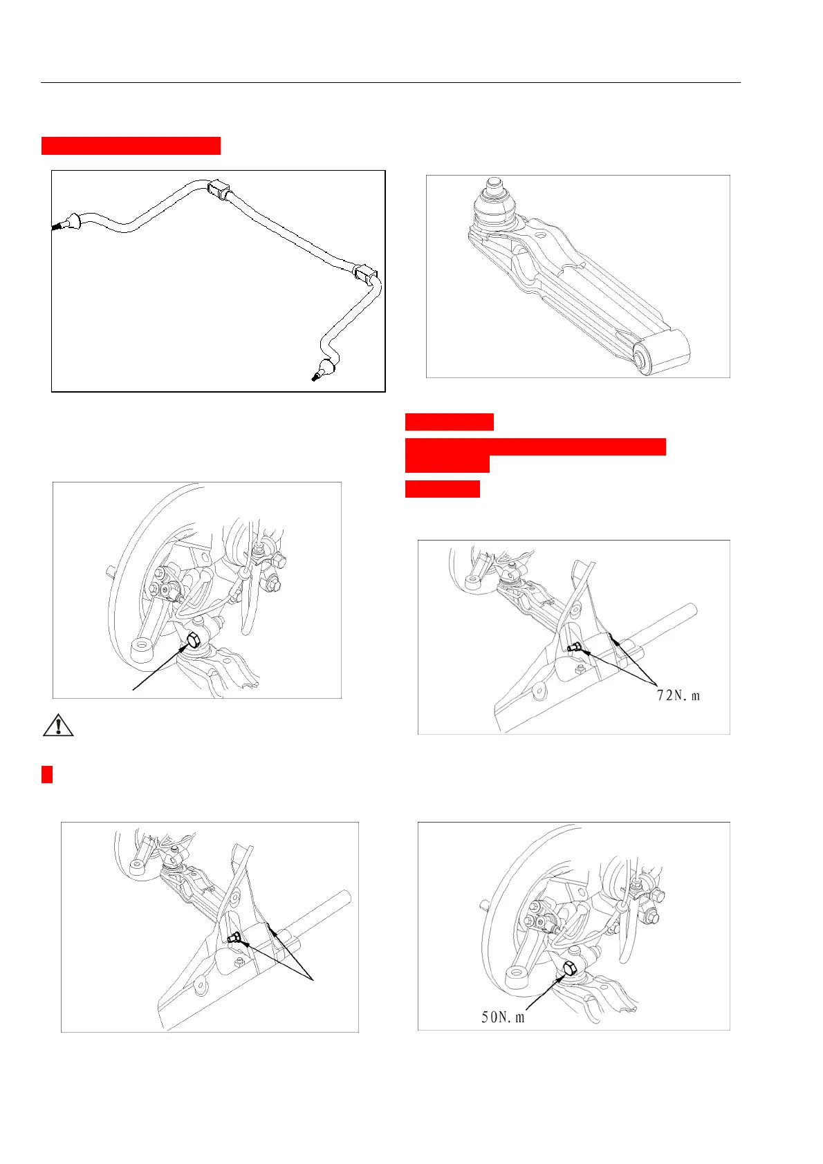 1. Install the bolts of the front oscillating arm and