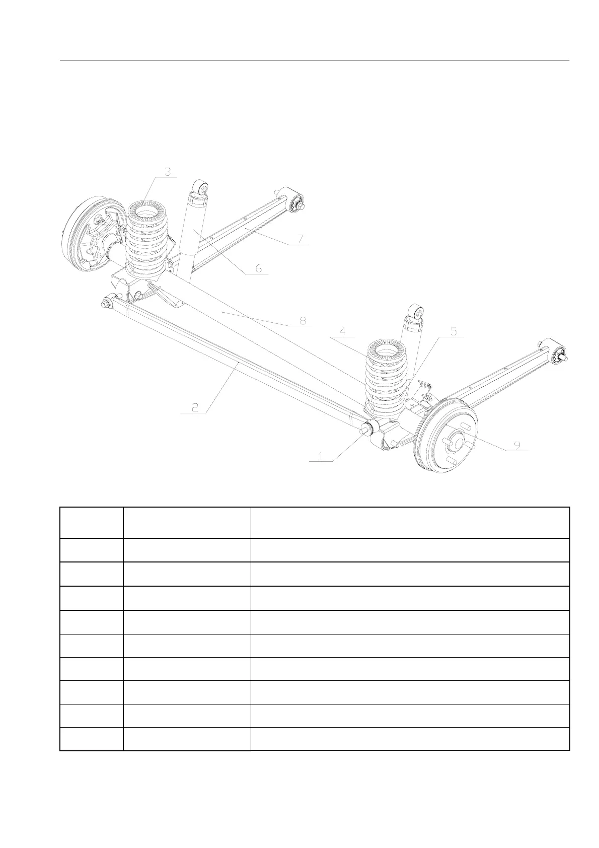 The rear suspension is composed of a rear axle assembly, spiral springs and a shock absorber assembly. The wheels