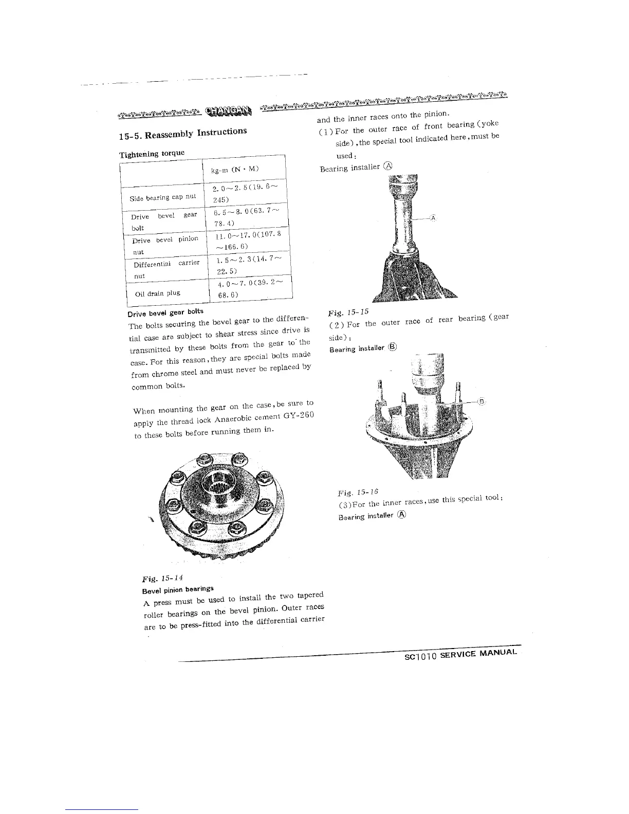 Changan SC1010 - Differential Reassembly; Drive Bevel Gear Bolts; Bevel Pinion Bearings