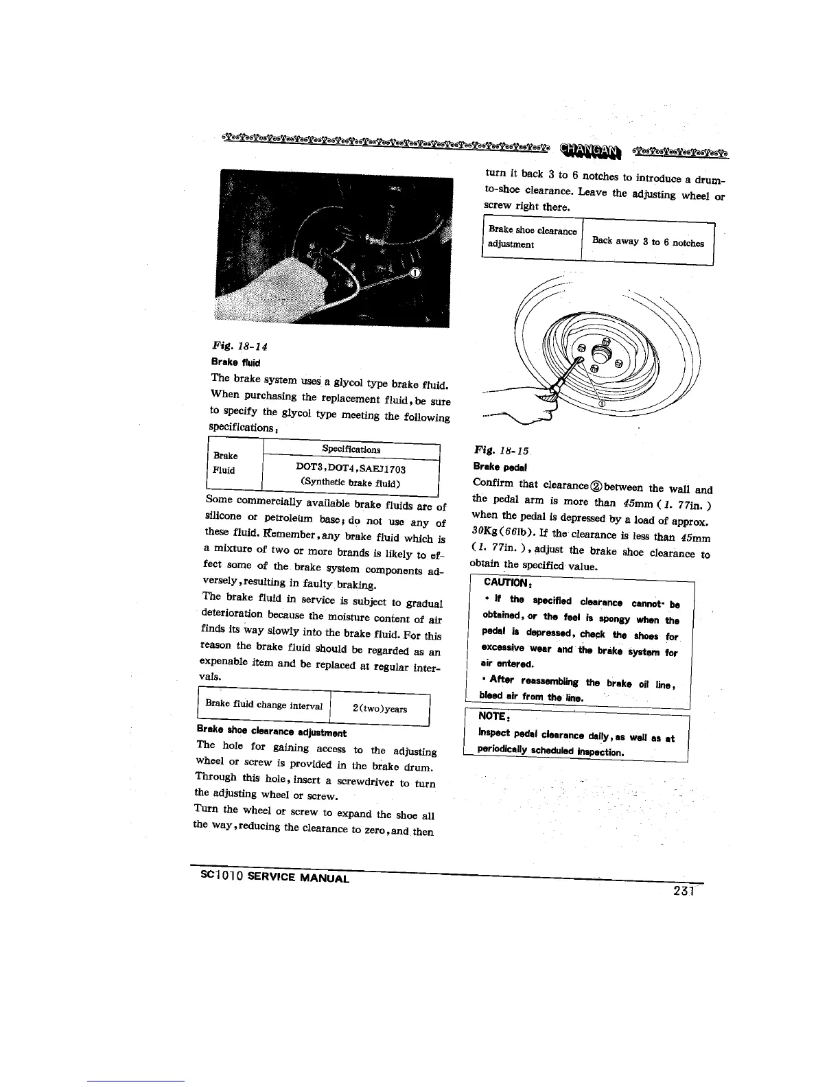 Changan SC1010 - Brake Fluid; Brake Shoe Clearance Adjustment; Brake Pedal Check