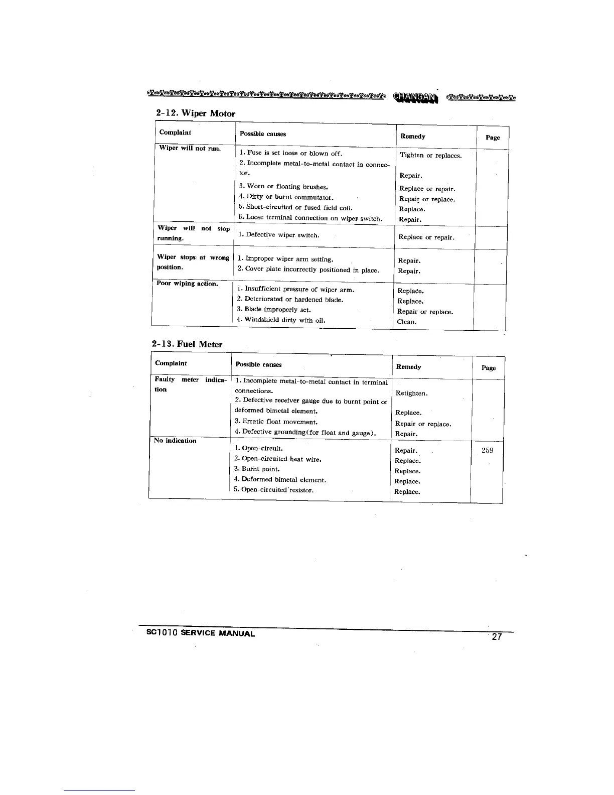 Changan SC1010 - Wiper Motor Troubleshooting; Fuel Meter Troubleshooting
