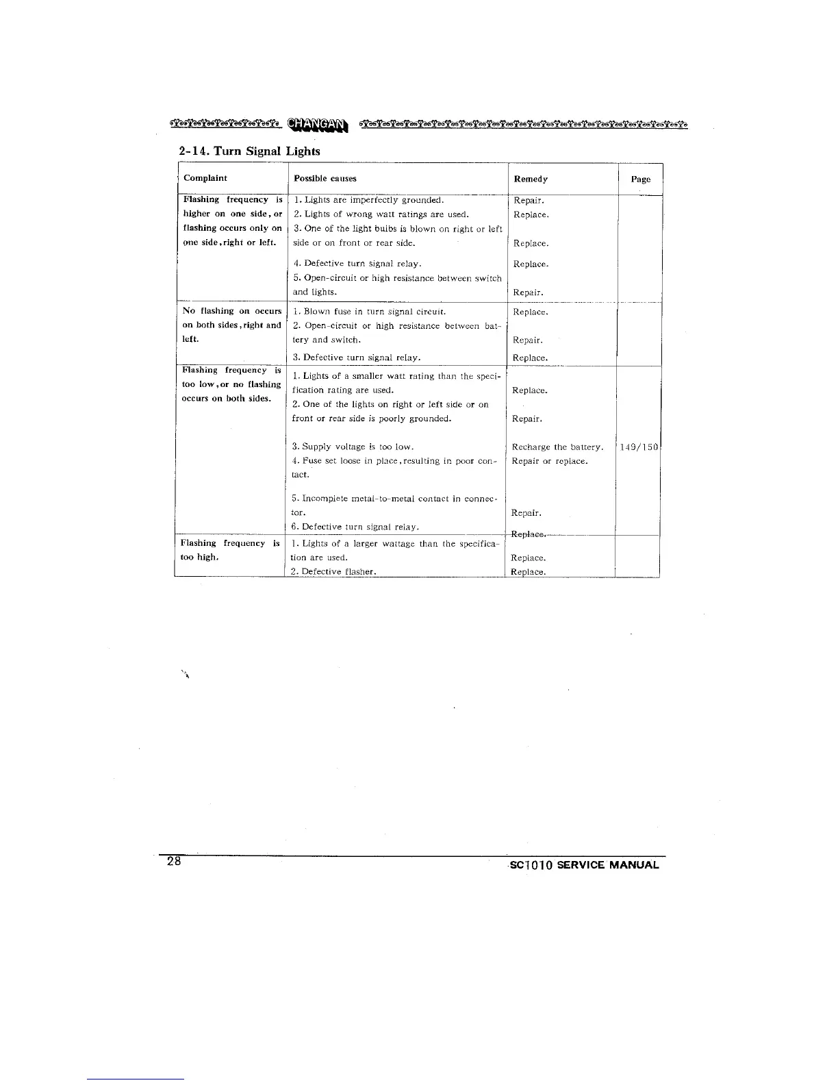 Changan SC1010 - Turn Signal Lights Troubleshooting