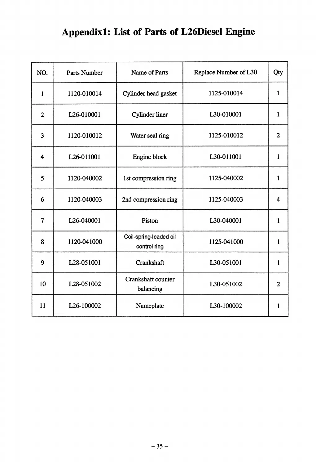 Changchai L26 - Appendix; 1 Partlist L26 Engine