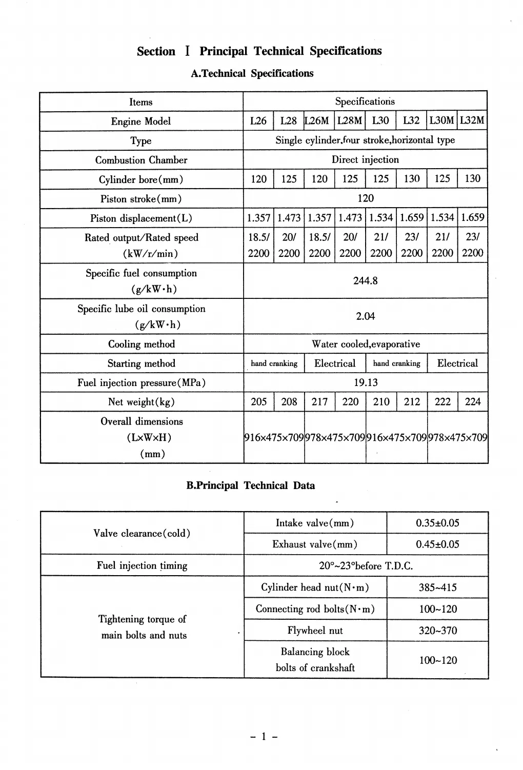 Section I Principal Technical Specifications