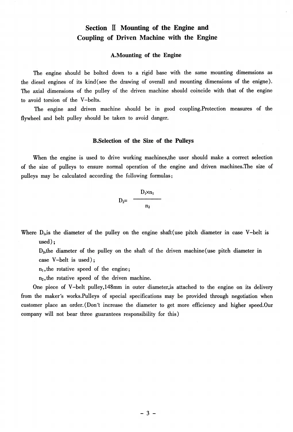 Section II Mounting of the Engine and
