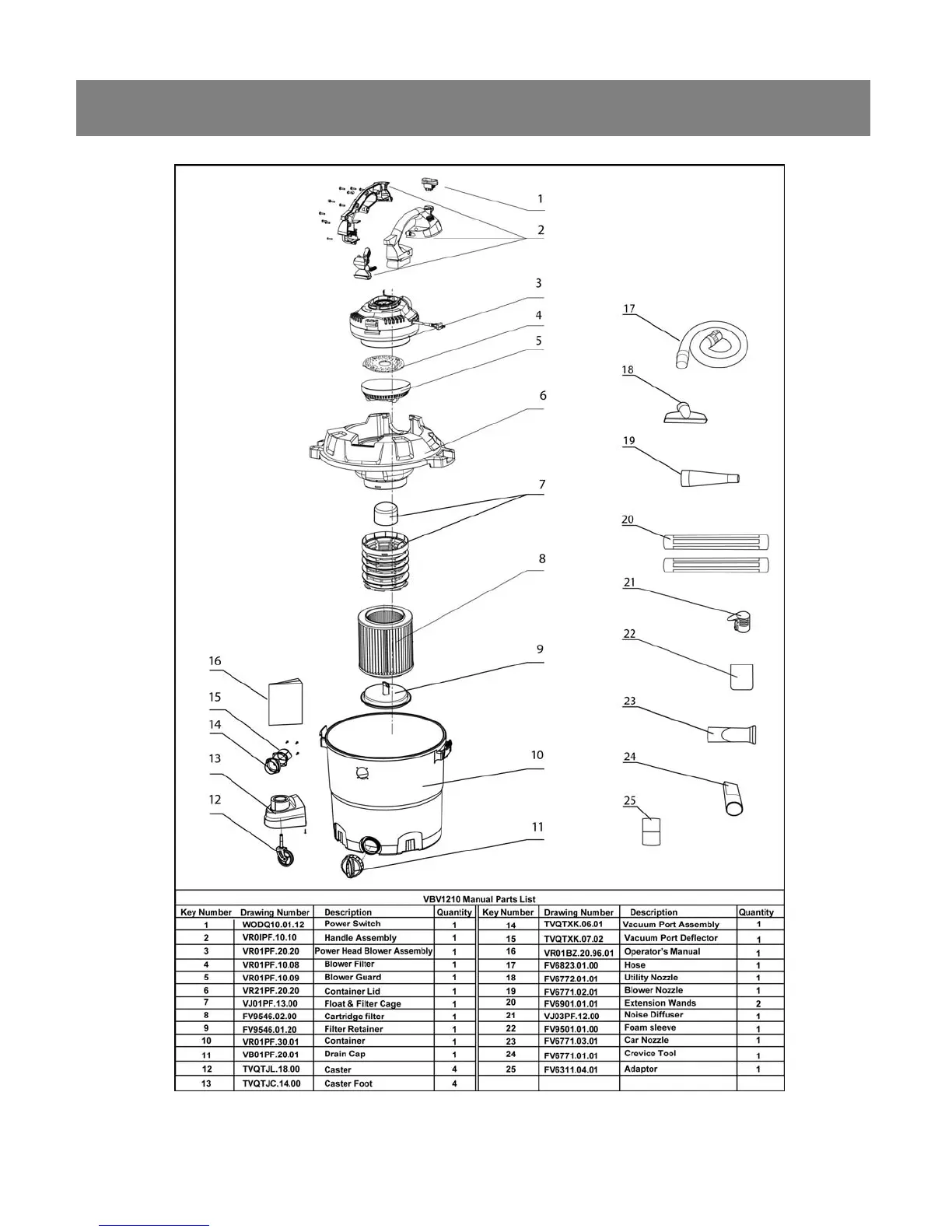 Channel Lock VBV1210 - Exploded View and Parts List