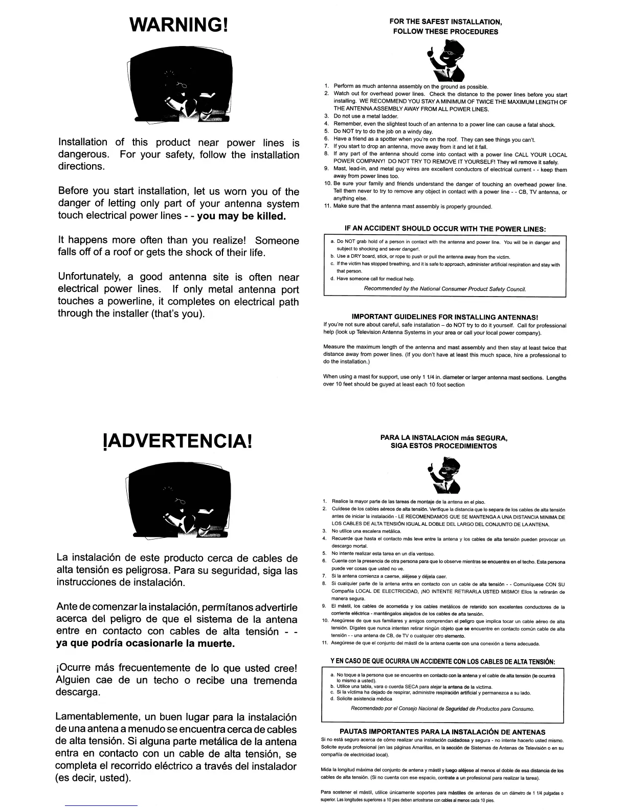 the antenna should come into contact with a power line CALL YOUR LOCAL