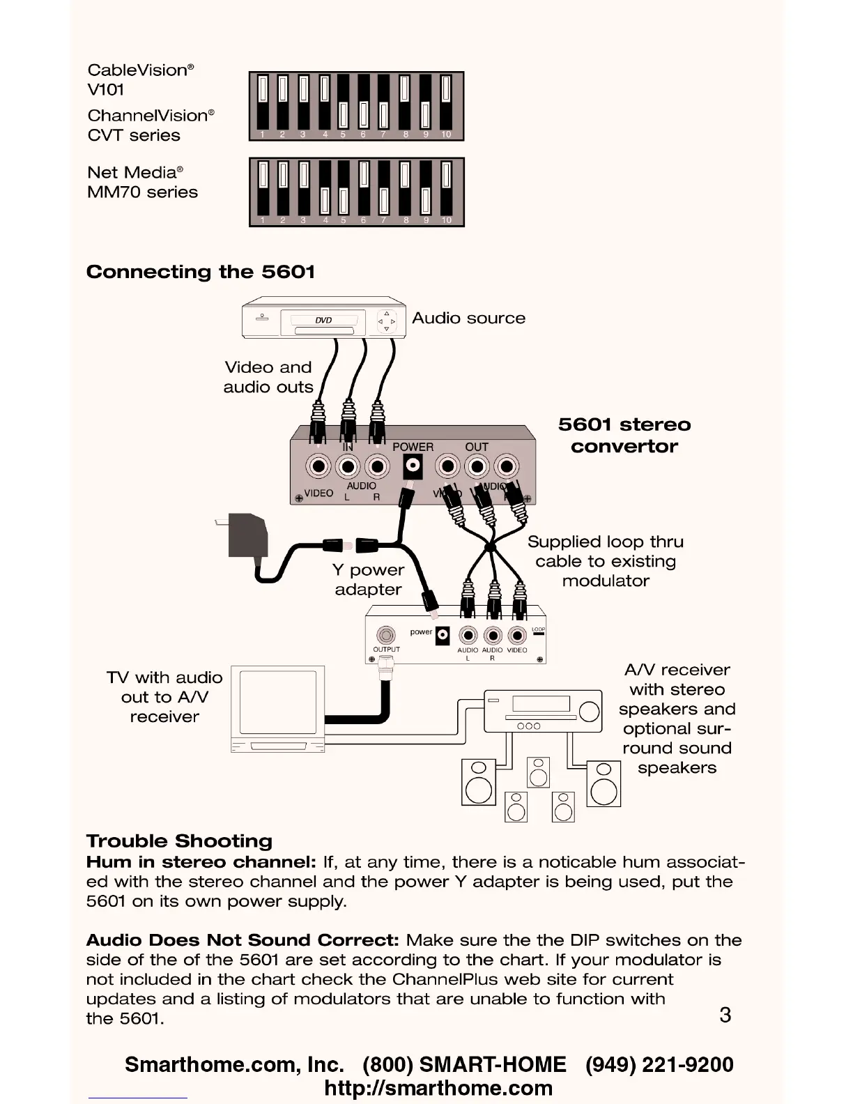 Channel Plus 5601 - Additional DIP Switch Settings; CableVision V101 Settings; ChannelVision CVT Series Settings; Net Media MM70 Series Settings