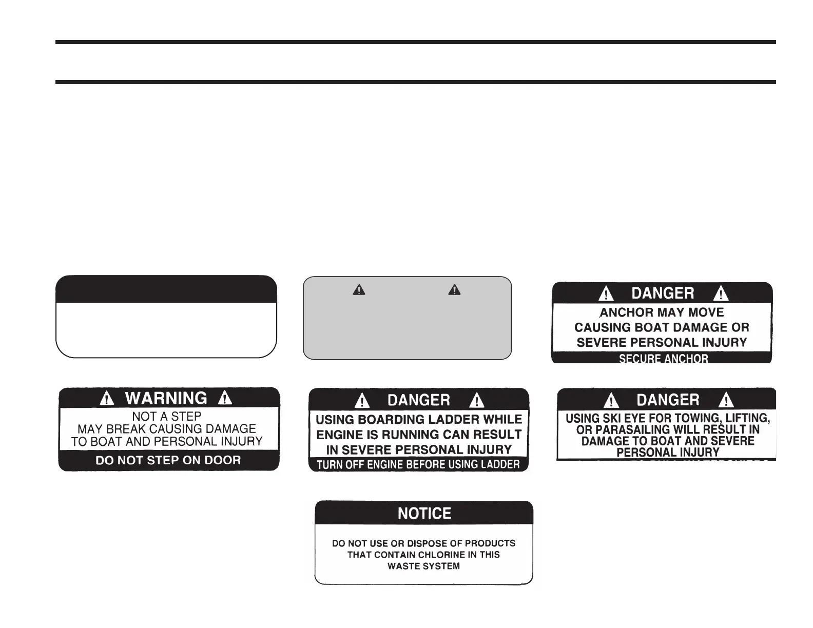 Some or all of the hazard communication labels shown on the following pages can be found in various locations of your boat. If your boat is