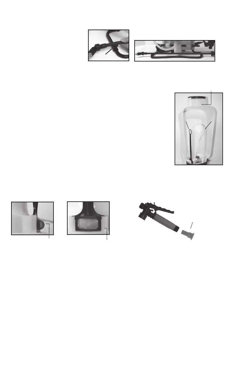 This backpack sprayer is equipped with a 3 stage filtering system (see figure