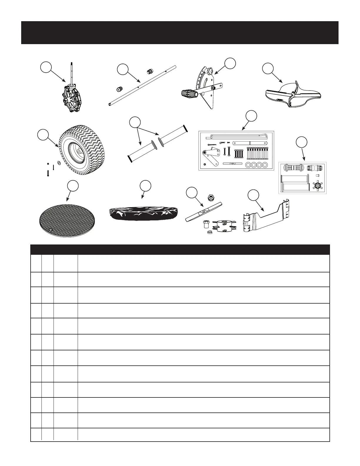 5 1 6-9078 Wheels w/hardware / Ruedas C/herrajes / Roues avec matériel (12”/30.5cm)