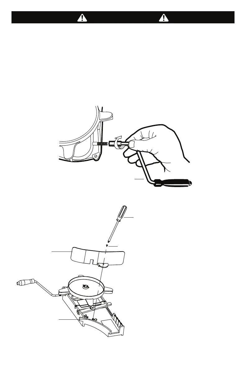 déecteur à xer. Pour xer à l’assemblage, tournez la manivelle sur l’arbre à manivelle dans le sens des aiguilles