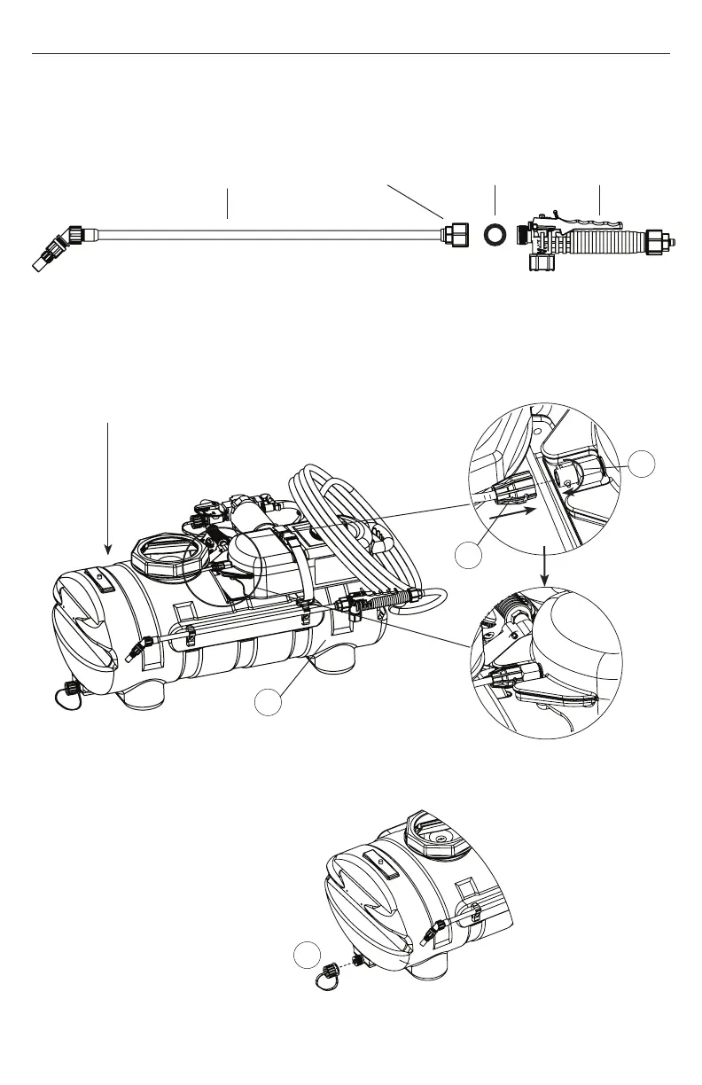 Fixez le tuyau d’aspiration de la vanne de mélange (1) à l’orifice du raccord rapide du réservoir de