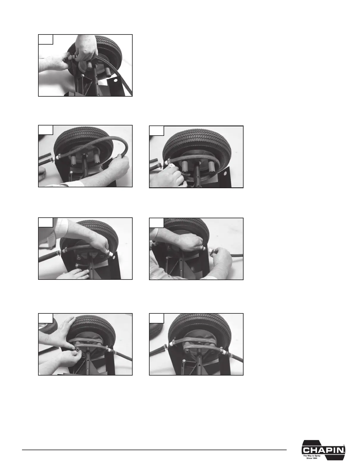 trasero de la placa de montaje. Conservando la tensión, enrosque la manguera