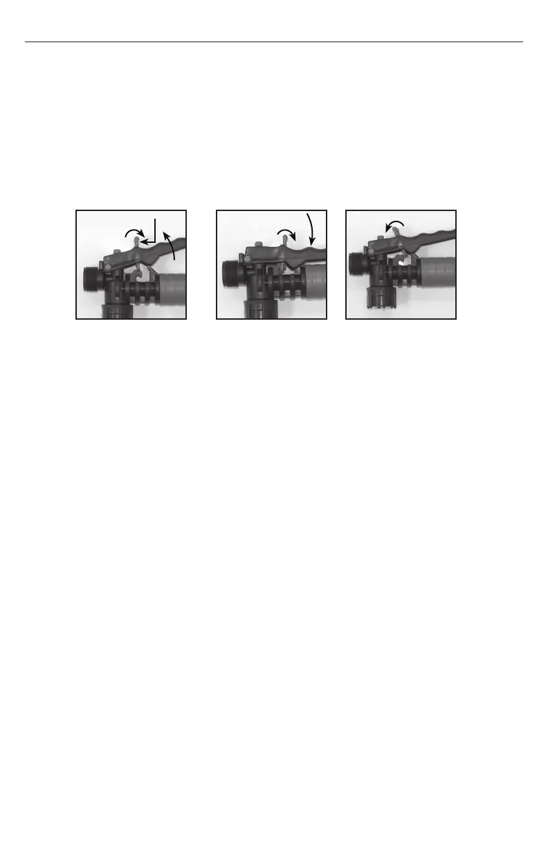(no pulverizar), levante la manija y mueva el mecanismo de bloqueo de color rojo a la posición de bloqueo como se