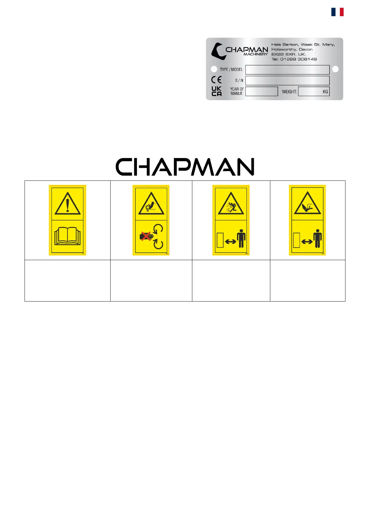 autocollants de remplacement avant d'utiliser l'appareil. Remarque : Tous les autocollants doivent être présents et visibles. Il est impératif