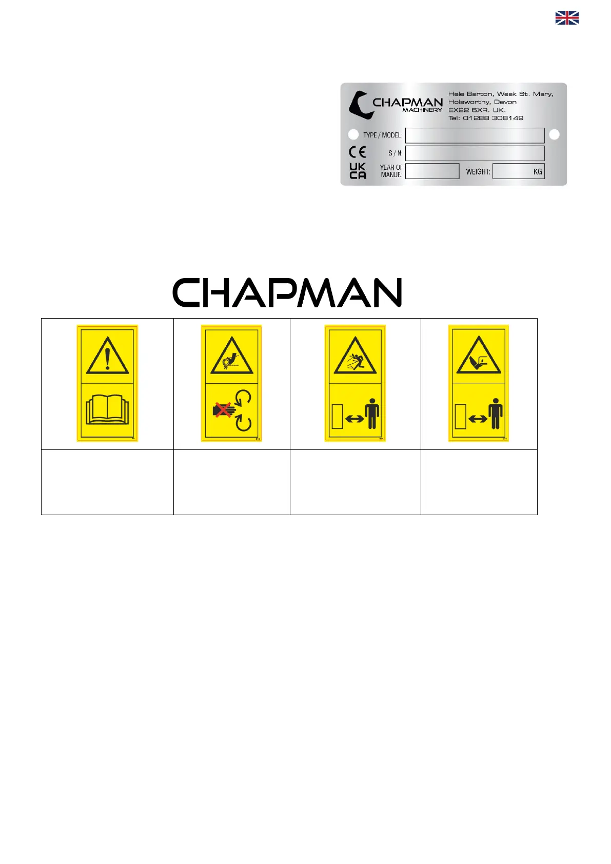 Each machine is fitted with a serial plate (shown below) which details the