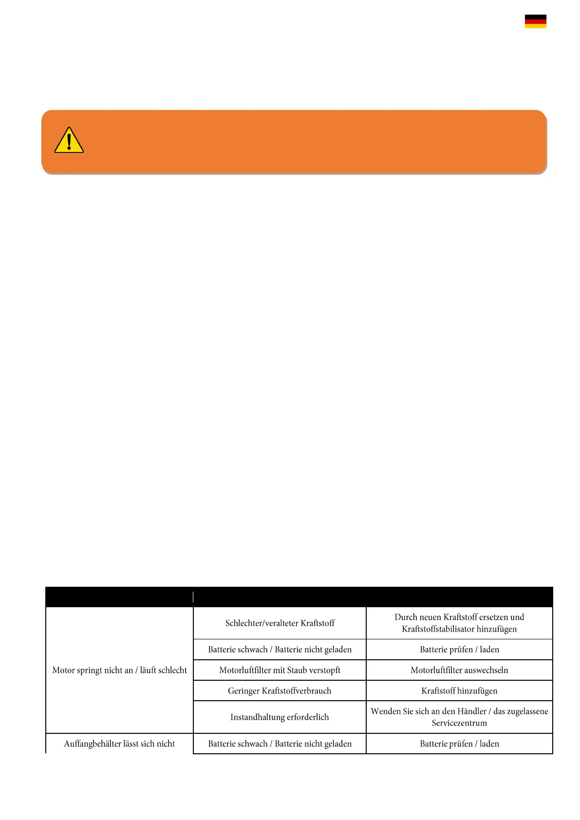Bei allen Wartungs-, Reinigungs- und Reparaturarbeiten muss die Maschine in geeigneter Weise abgestützt, der Motor abgestellt (und