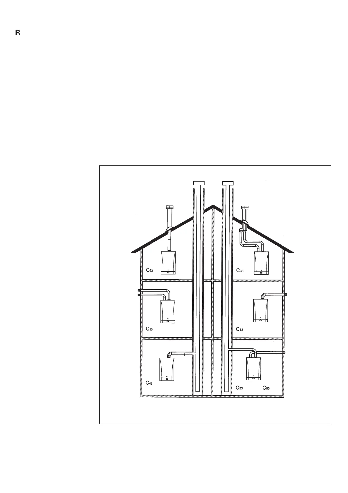 The boiler is especially designed for connection to an exhaust flue / air ducting, with either coaxial,