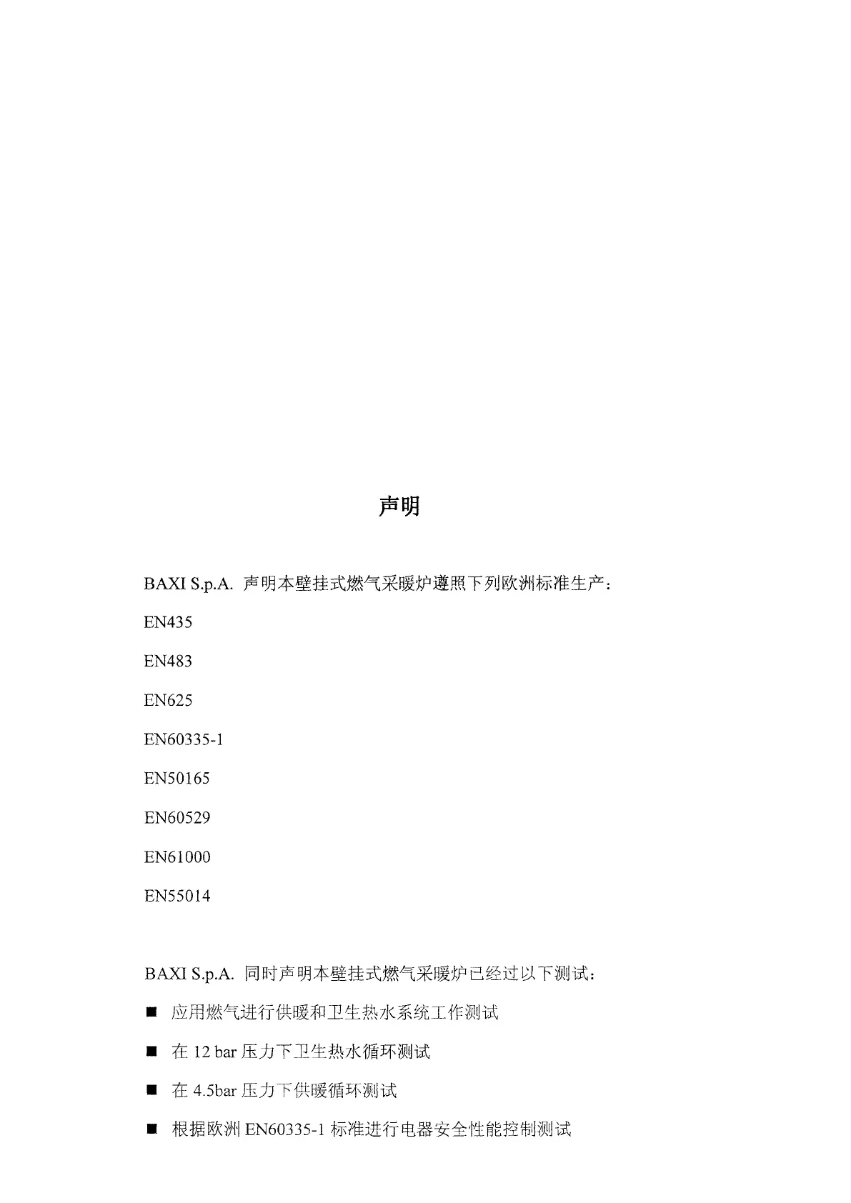BAXI S.p.A. declares that this wall hung gas boiler is made in compliance to the following European