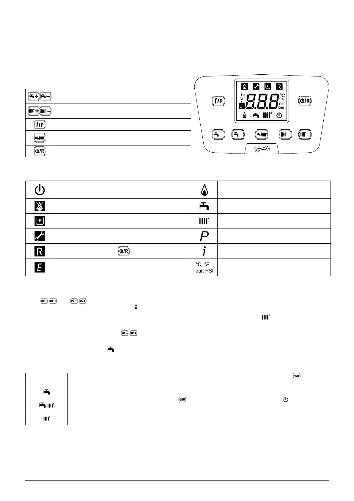 To enable the appliance in DHW - Heating or Heating only press