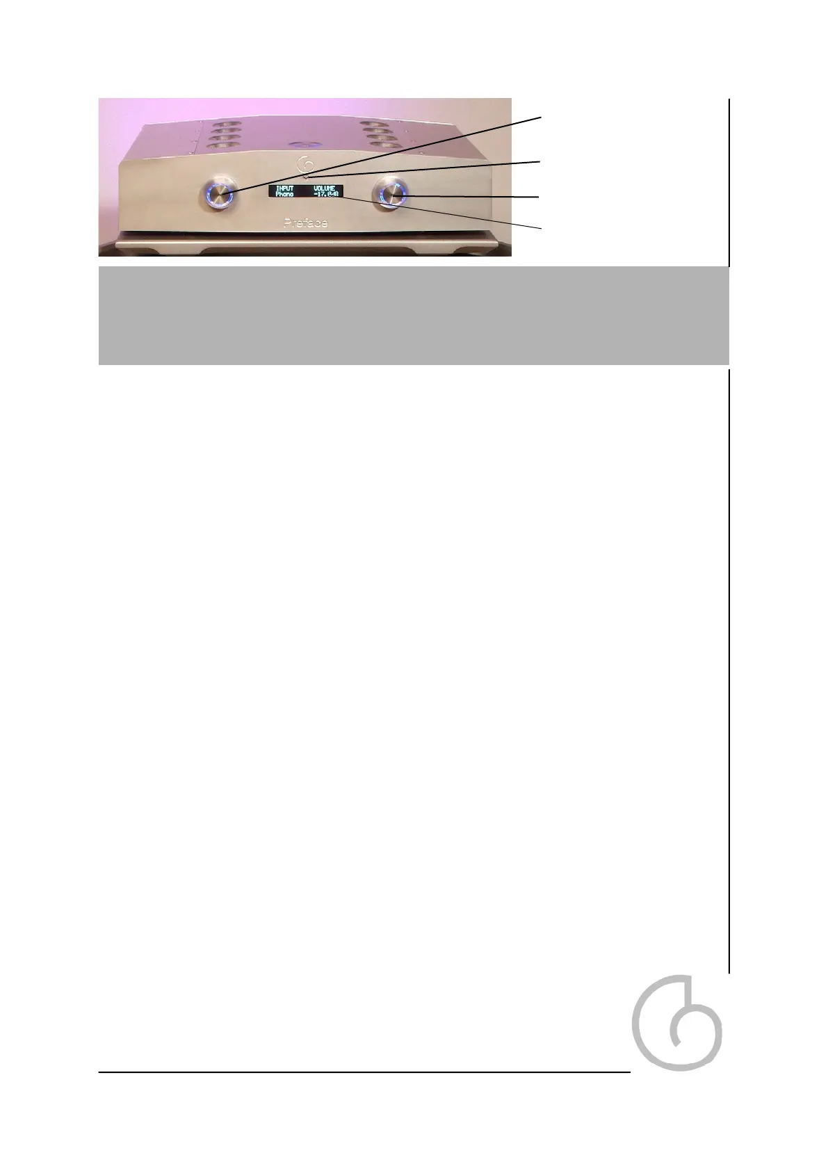 There are two knobs on the front of the Preface. The knobs will glow blue when