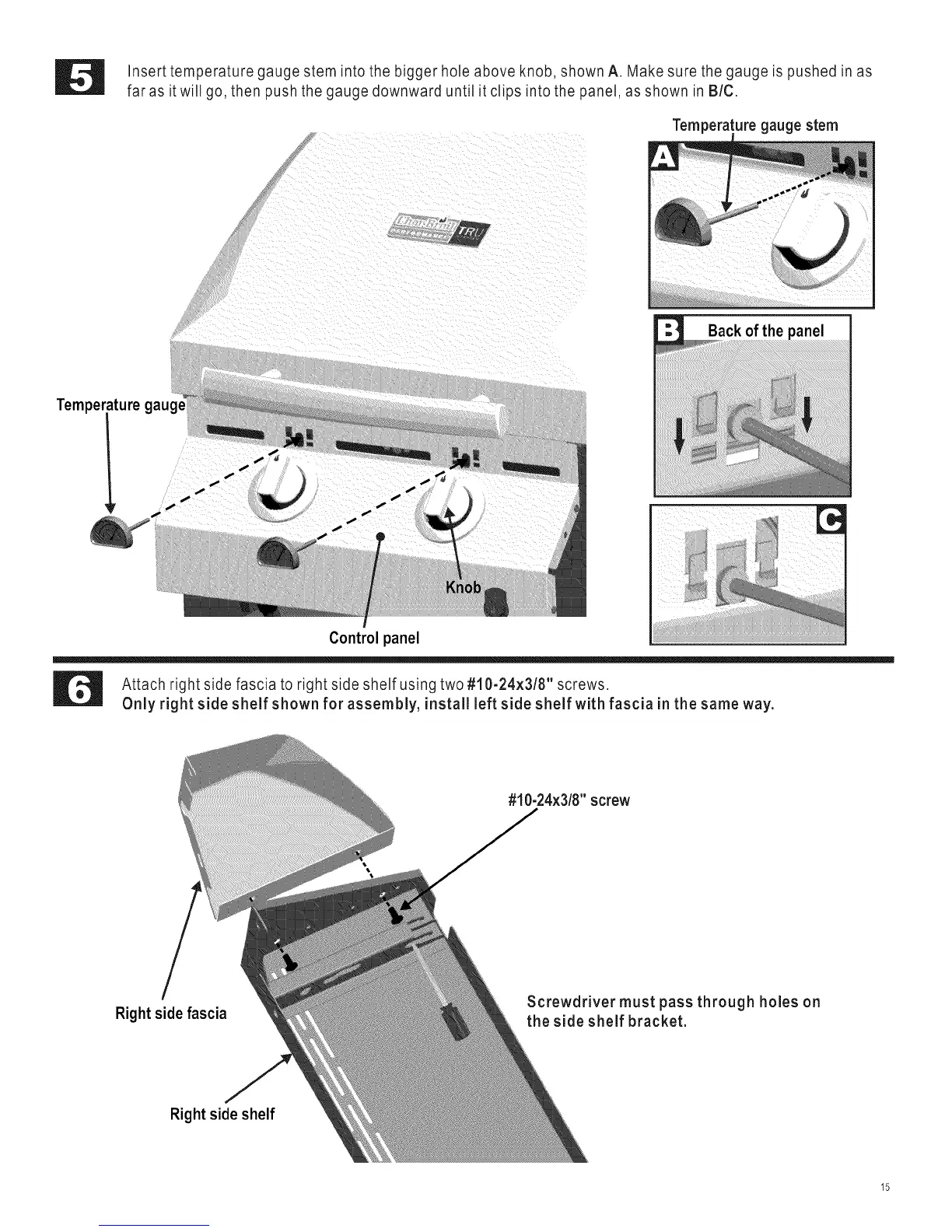 Attach right side fascia to right side shelf using two #10-24x3/8" screws.