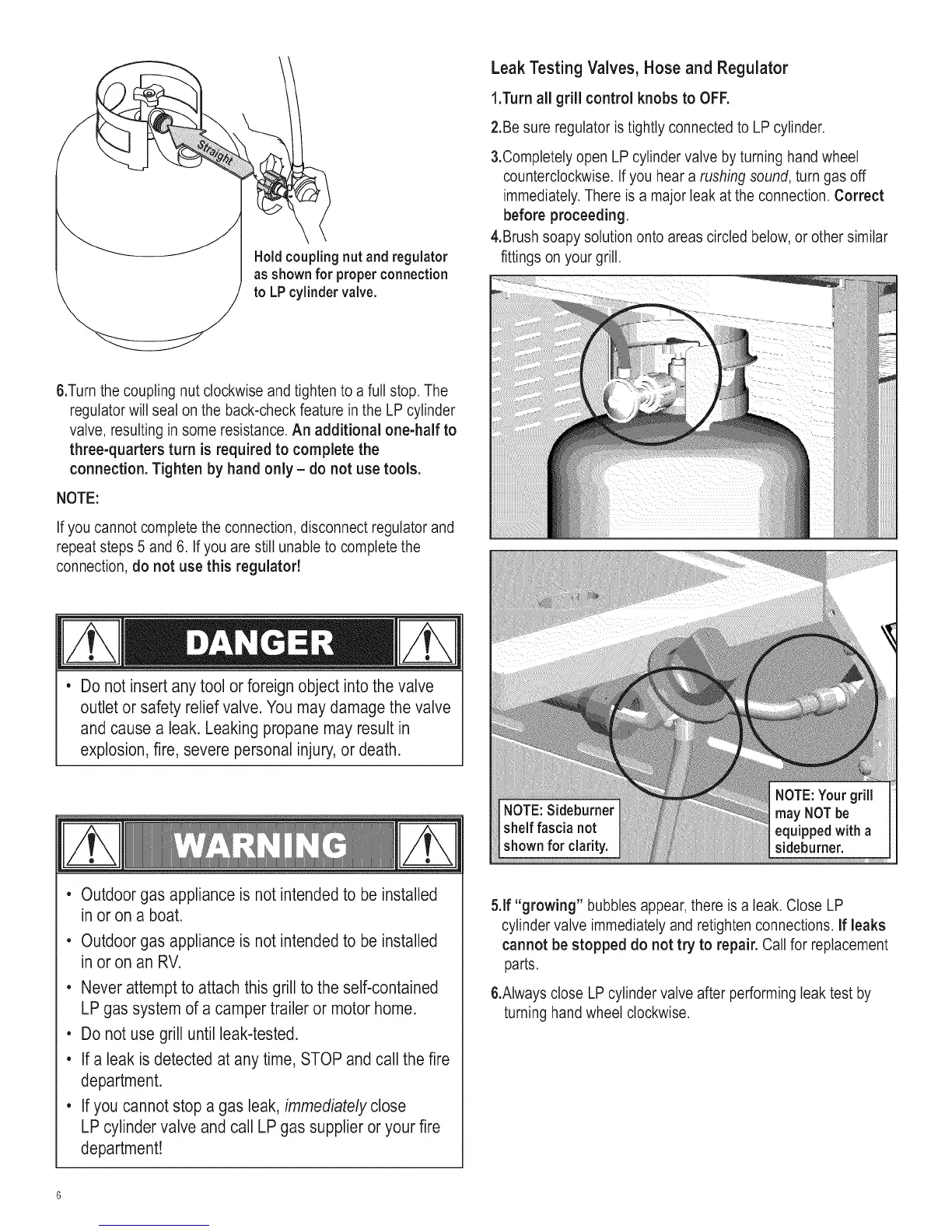 • Do not use grill until leak-tested.