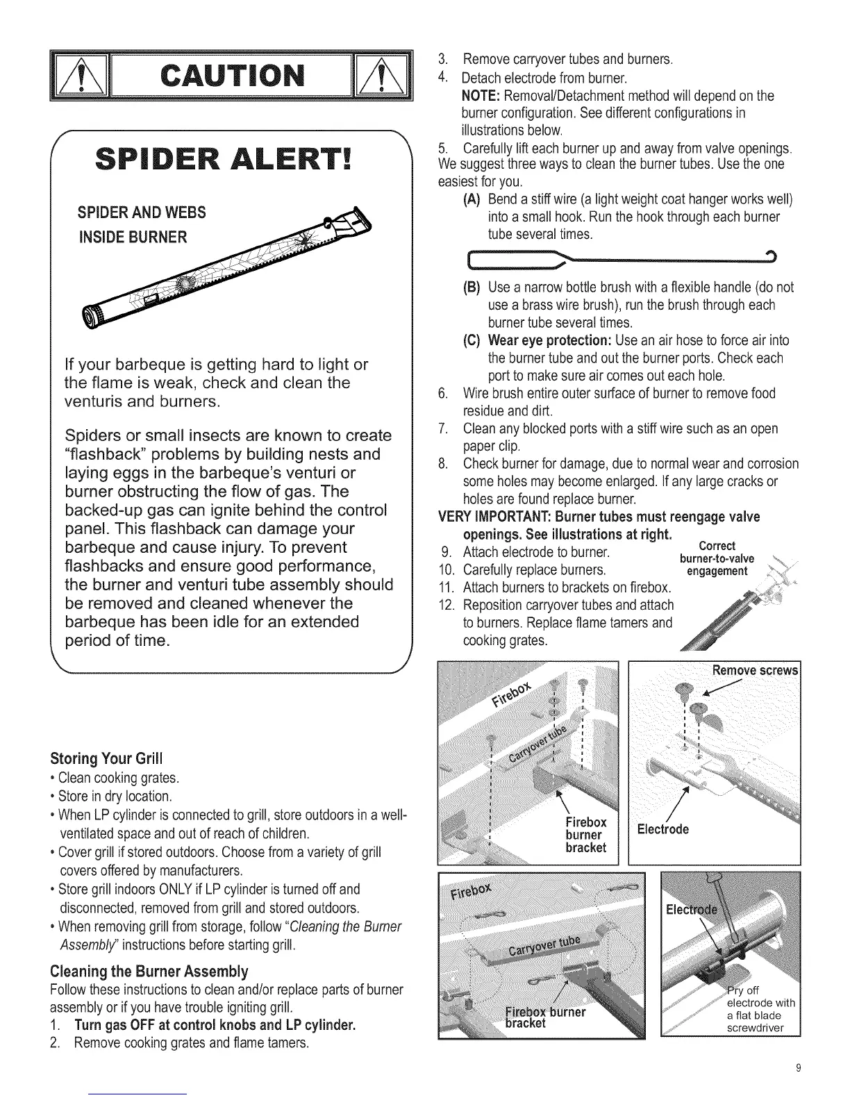 . When removing grill from storage, follow "Cleaning the Burner