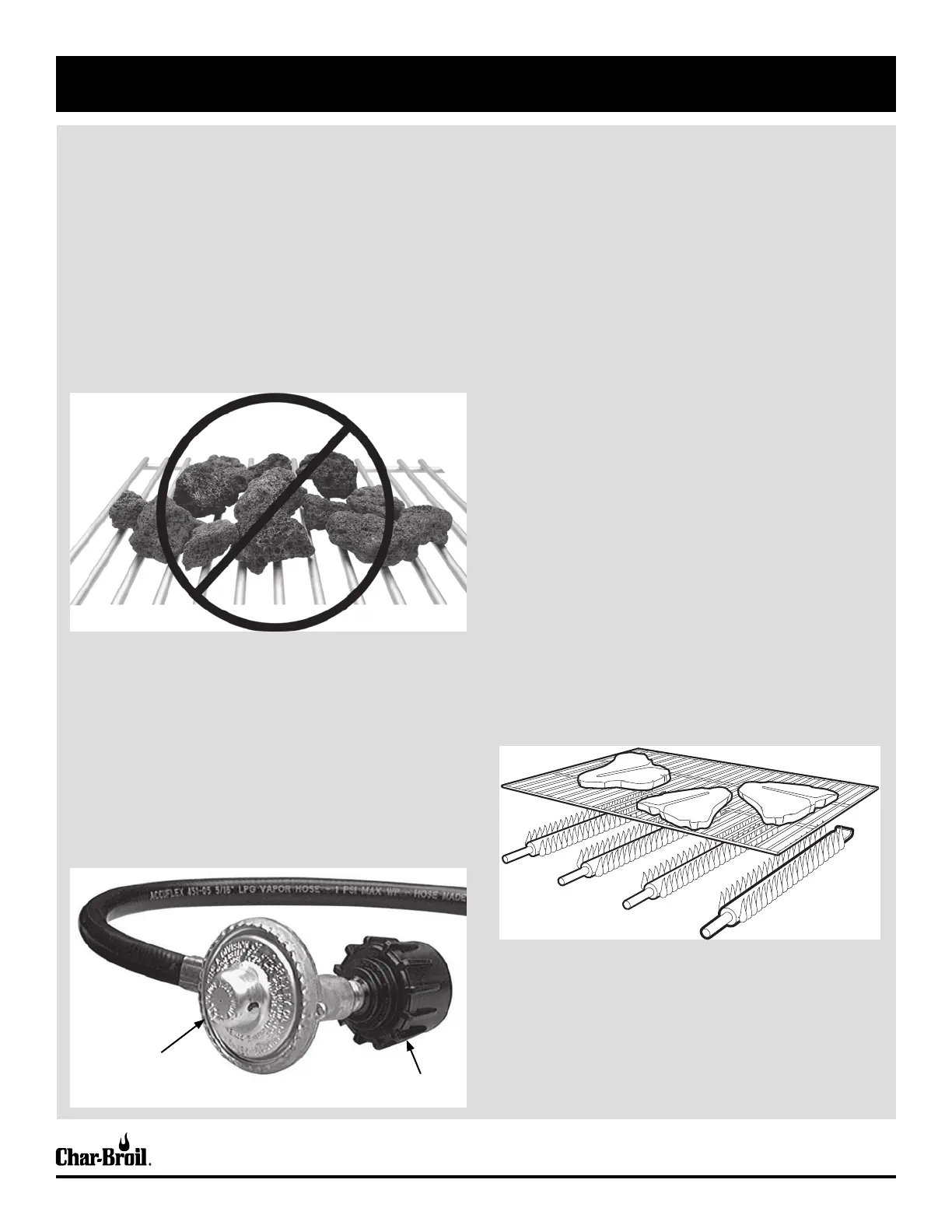 after market lava rocks, charcoal, or briquettes of any type will cause poor combustion and