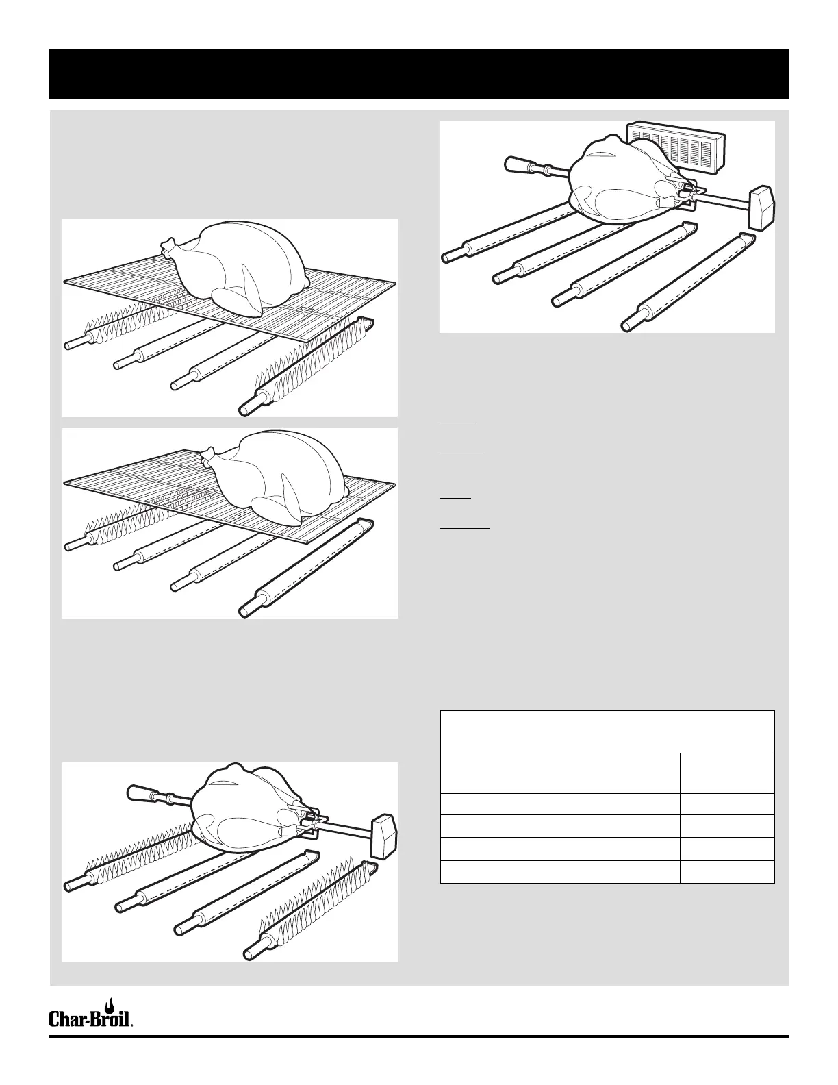 y de aves. Debajo de la carne, se puede colocar un recipiente para la grasa y el jugo de la