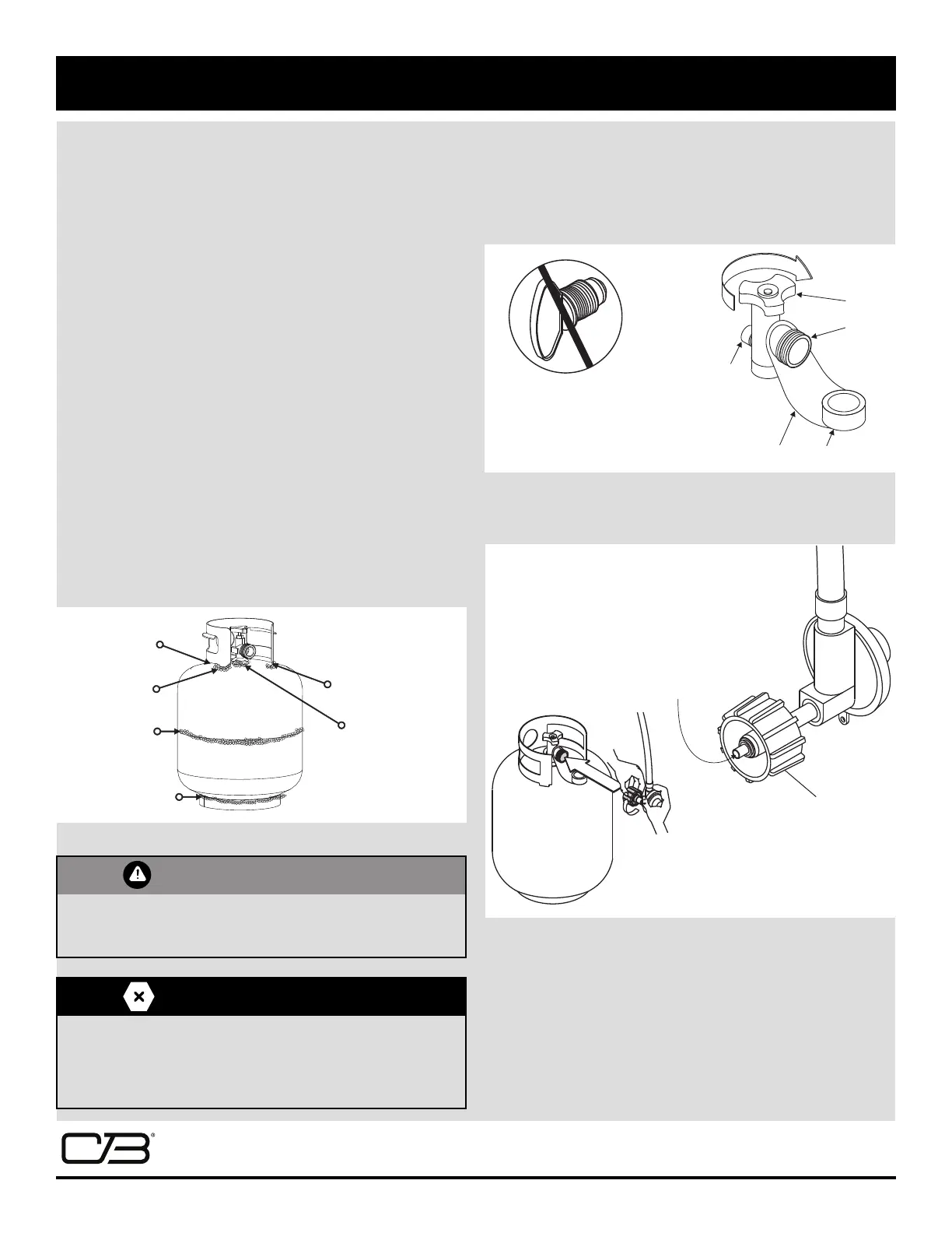 • Leak test new and exchanged LP cylinders BEFORE connecting to grill.