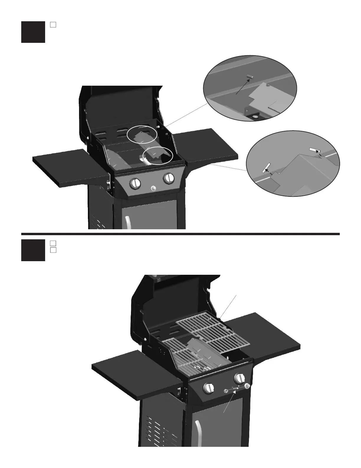 Char-Broil 463650413 - Assembly: Internal Components; Heat Tent Placement; Grates and Ignitor Battery Installation